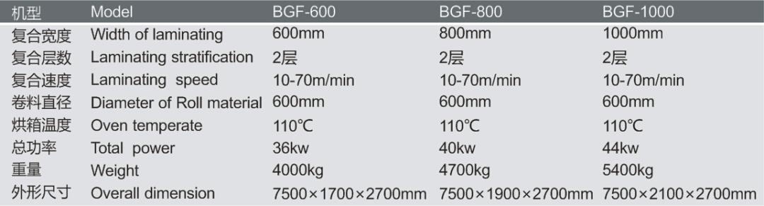 該機適用于塑/塑復(fù)合、紙/塑復(fù)合、鋁/塑復(fù)合等包裝行業(yè)中各種材料的復(fù)合。